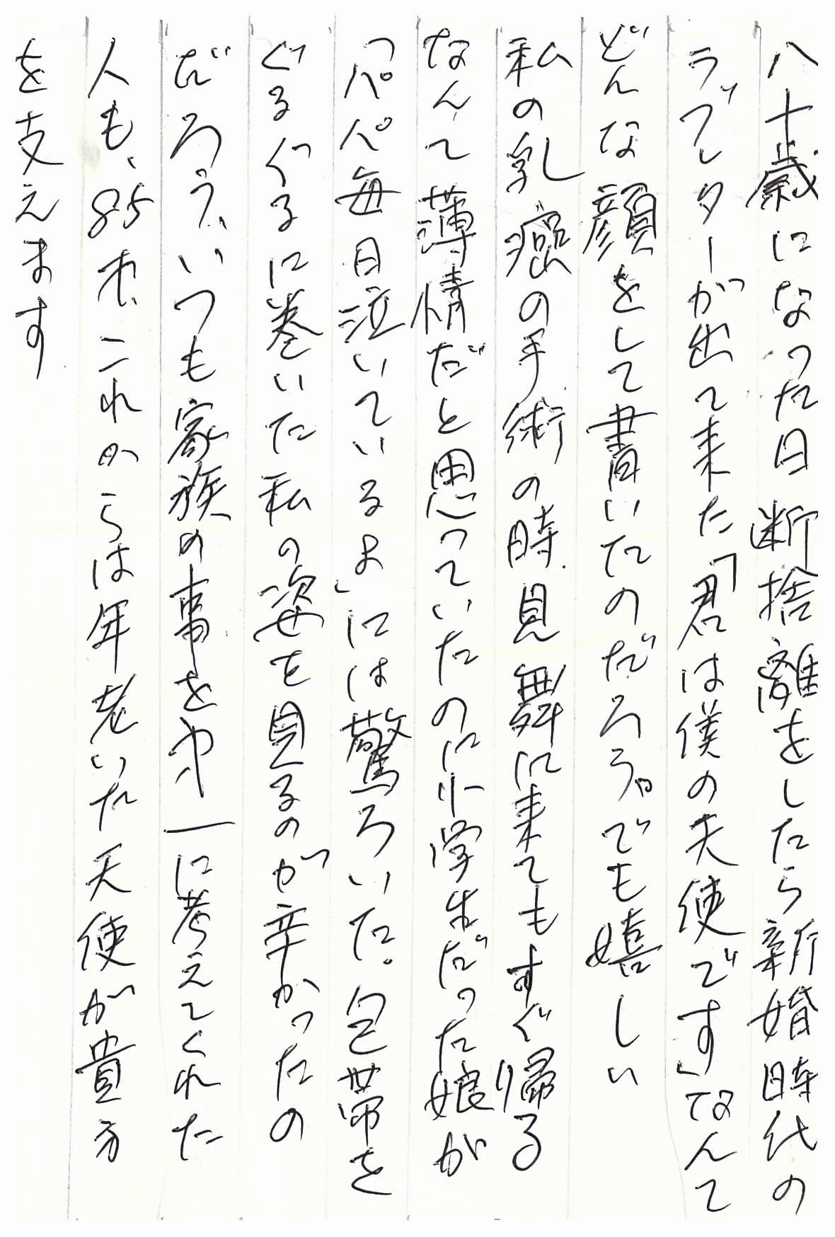 コロナ禍で面会禁止となり、私は前日の新聞に便箋一枚の便りをはさんで事務所へ届けます。
